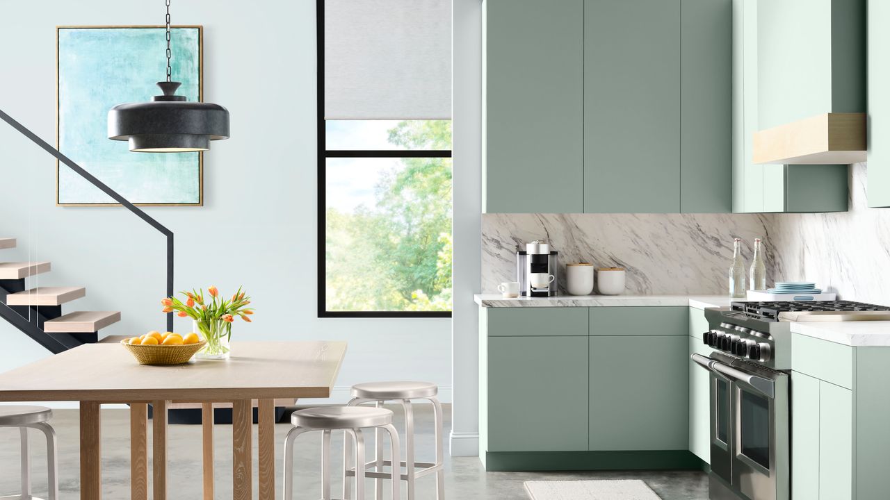 «Si adoptas una estética minimalista y atormentadora, e inyectas uno de los colores suaves como Halcyon Green, al instante eleva el espacio y le da una cierta vida».