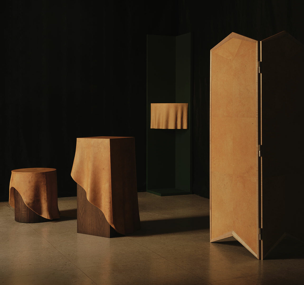 Además del trabajo de Studio TooJ, Fanny Perrier también muestra su MicelioEsta es una pantalla plegable neoclásica de seis paneles que rinde homenaje a diseñadores como Jean-Michel Frank de la pantalla decorativa de la década de 1930. Reishi ™ adorna cada panel integrado en lugar de cuero o pergamino y es una típica cubierta de material.