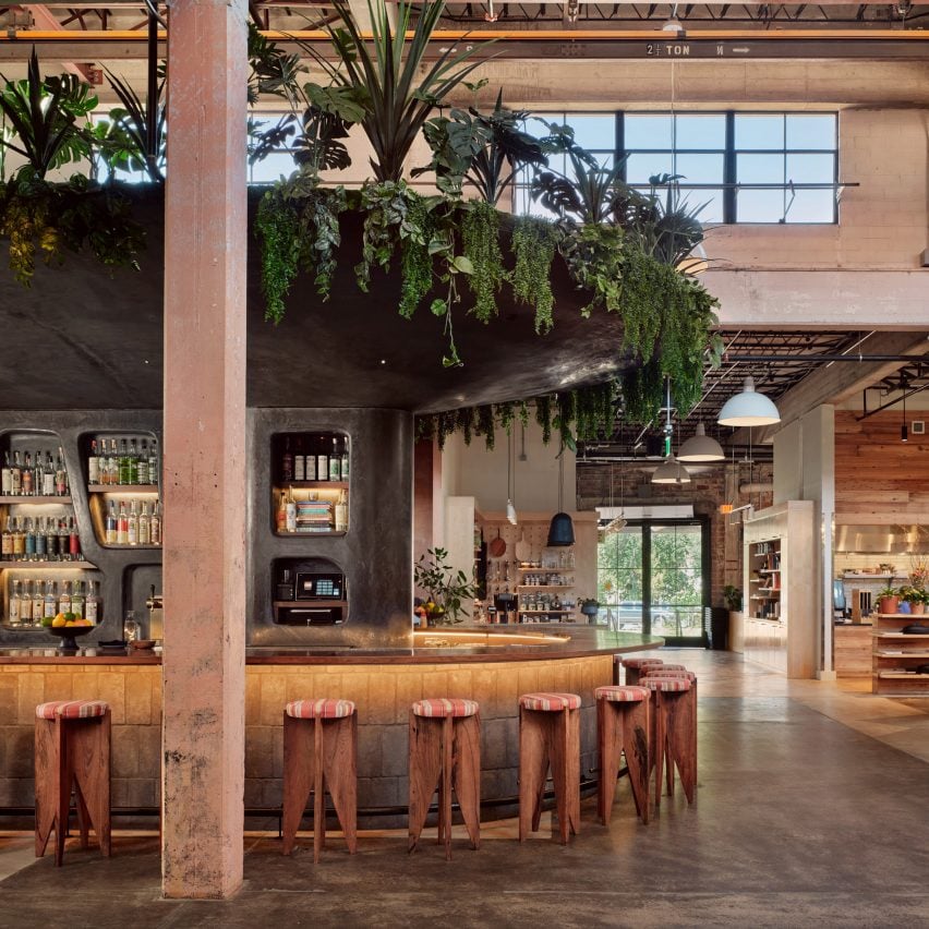 El camino circulante principal se extiende a lo largo de la columna central del edificio, creando momentos de descubrimiento y vista para diferentes artesanos a medida que los visitantes abordan la característica. Mezaleria bar.