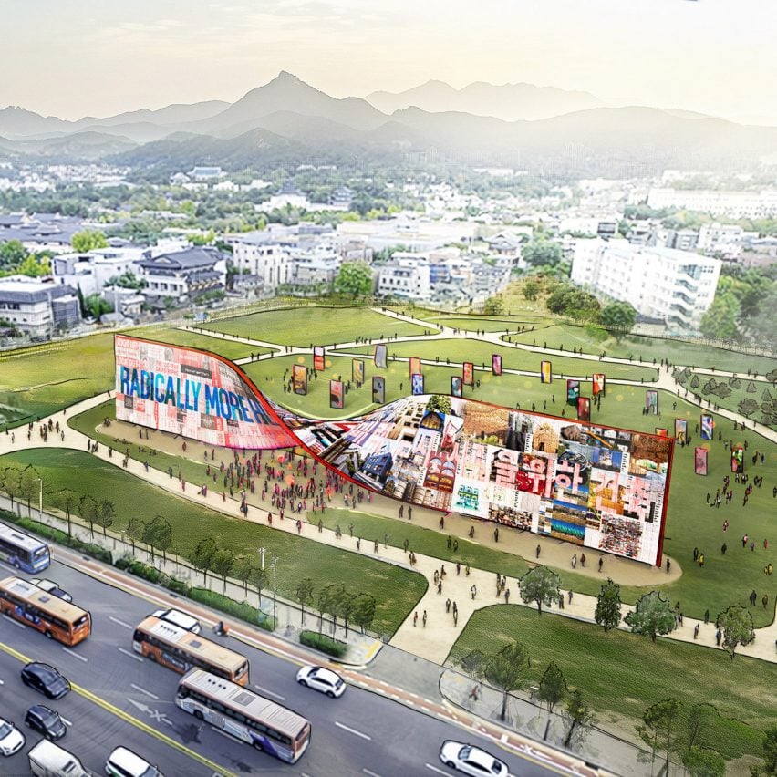 Gonghyeon Green Plaza, que formará el centro geográfico de la Bienal, también usará instalaciones elevadas de 90 metros de largo y cuatro pisos como la pared cultural.