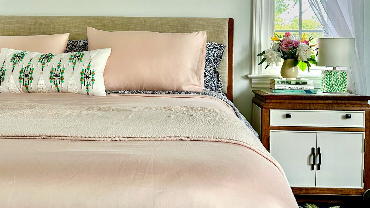 Una variante de esta cama de seda de las pegatinas de bambú es igualmente lujosa. Alpert dice que su brillo es «absolutamente palaciega. Una vez que alcanzas las manos sobre la cáscara, parece que está hecha a medida. Increíblemente sedoso y genial al tacto». Este contacto de 12 puntos también es útil, además de la prueba de Alpert de que después de muchos ciclos en el proceso de lavado, no hay píldora que decir.
