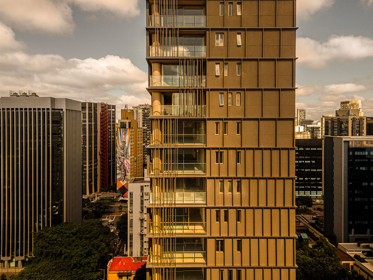 Un edificio de 40 pisos ligeramente recuperado de arterias particularmente anchas, ahora cubiertos, fragmentos externos de cargas de trabajo de celosía de programas de cuerpo humano dispersos para la mezcla dinámica. Unirse a áreas residenciales y podios comerciales maduros está equipado profesionalmente Pulso del hotel. Como la mayoría de los complejos, el alojamiento aquí refleja una estética unificada, texturizada pero atormentadora que está influenciada por el prolífico movimiento moderno brasileño y su influencia duradera.