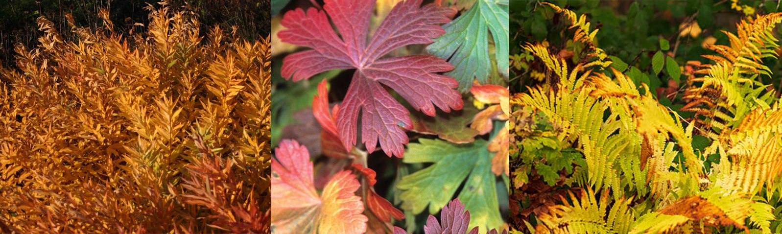 Considere que las hojas de las plantas perennes se convierten en colores vivos de otoño: Amsonia (amarillo vibrante), geranios salvajes (rojo y naranja) y helechos (muchos se convierten en un hermoso amarillo).