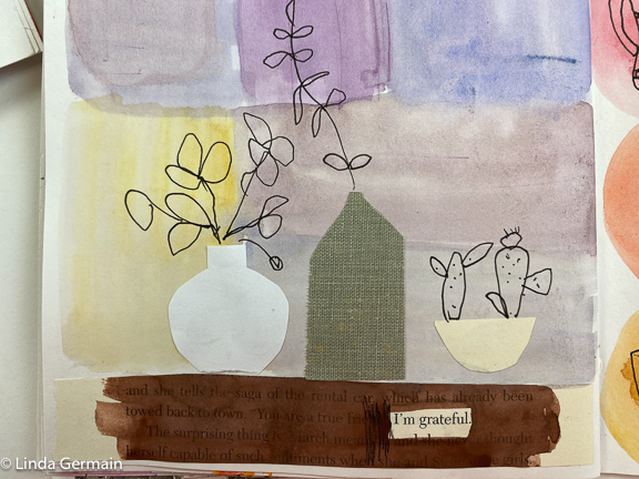 Arriba, utilicé una porción de poemas negros, telas de libros y páginas para collage.