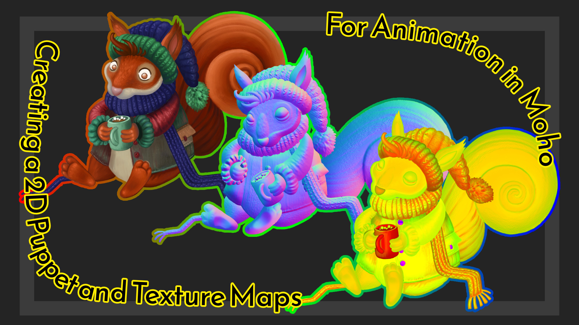 El video muestra que creé varios tipos de textura jerárquica, incluidos mapas normales y texturas para la representación física basada en la física, y luego los exporté en un formato de Photoshop en capas o un archivo PSD para que pueda animar en Moho y usar iluminación dinámica en una aplicación 3D.