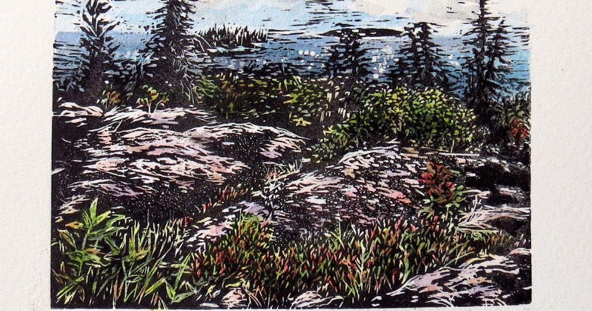 Elegí un paisaje para dibujar fotos que hice en un viaje al este hace unos años para visitar a mi familia. Este es un típico afloramiento de roca de Cumbria Shield, que bordea la costa norte del lago Superior en el lado canadiense de la frontera, donde las personas a menudo encuentran arbustos de arándanos de baja frase, flores de liebres que crecen en las rocas. También hay muchos líquenes que se extienden sobre las antiguas caras de granito en las rocas. Esta es una de mis cosas favoritas para vivir en mi área.