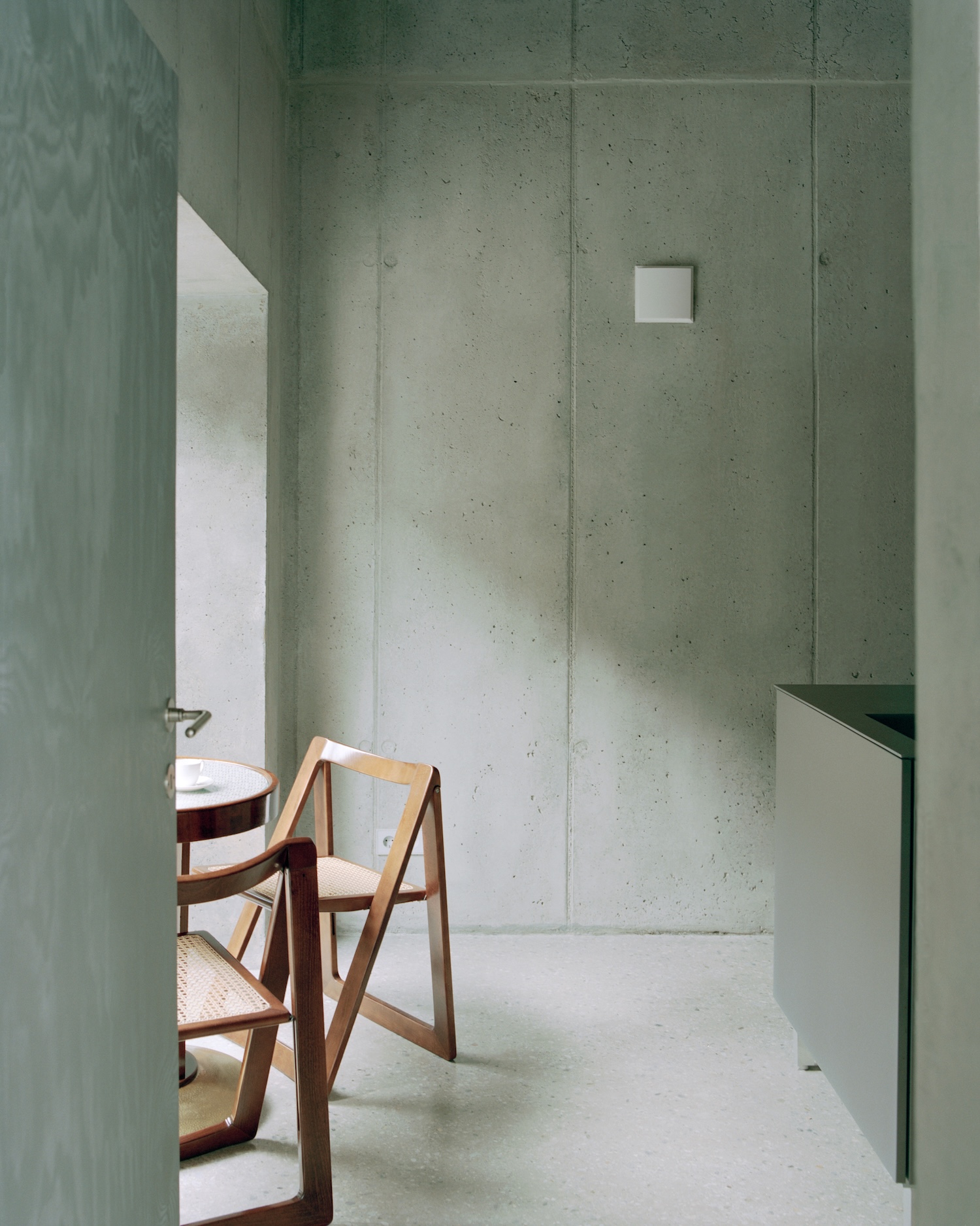 Las estrategias materiales revelan el compromiso de los arquitectos con lo que se llama «estructura honesta». El exterior de 55 cm de espesor del concreto de aislamiento térmicamente se ve casi medieval en su masa, pero puede lograr completamente fines modernos. Este enfoque holístico (que comparte la misma realidad material interna y externamente) desafía la complejidad estratificada que domina las prácticas arquitectónicas contemporáneas. La masa térmica se convierte en las tuberías integradas directamente en las losas del piso sin un tratamiento de superficie adicional, formando así lo que el arquitecto llama «masa de activación térmica».