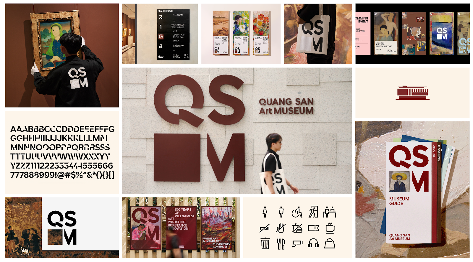 Como el primer museo de arte privado de la ciudad dedicado a las bellas artes vietnamitas, Quang San House tendrá más de 1,600 obras, un registro de la vida en la evolución artística del país, desde la India temprana hasta la influencia hasta el límite cuando los representantes llegaron. Esta nueva identidad no solo ve el museo como un lugar para ver el arte, sino que también siente arte. Cada elemento de diseño, desde logotipos y géneros hasta fotografías e imágenes digitales, se basa en el concepto de «capas de contemplación», y la meditación de datos personales como pinceladas, ladrillos o gestos se combina en un todo más grande.