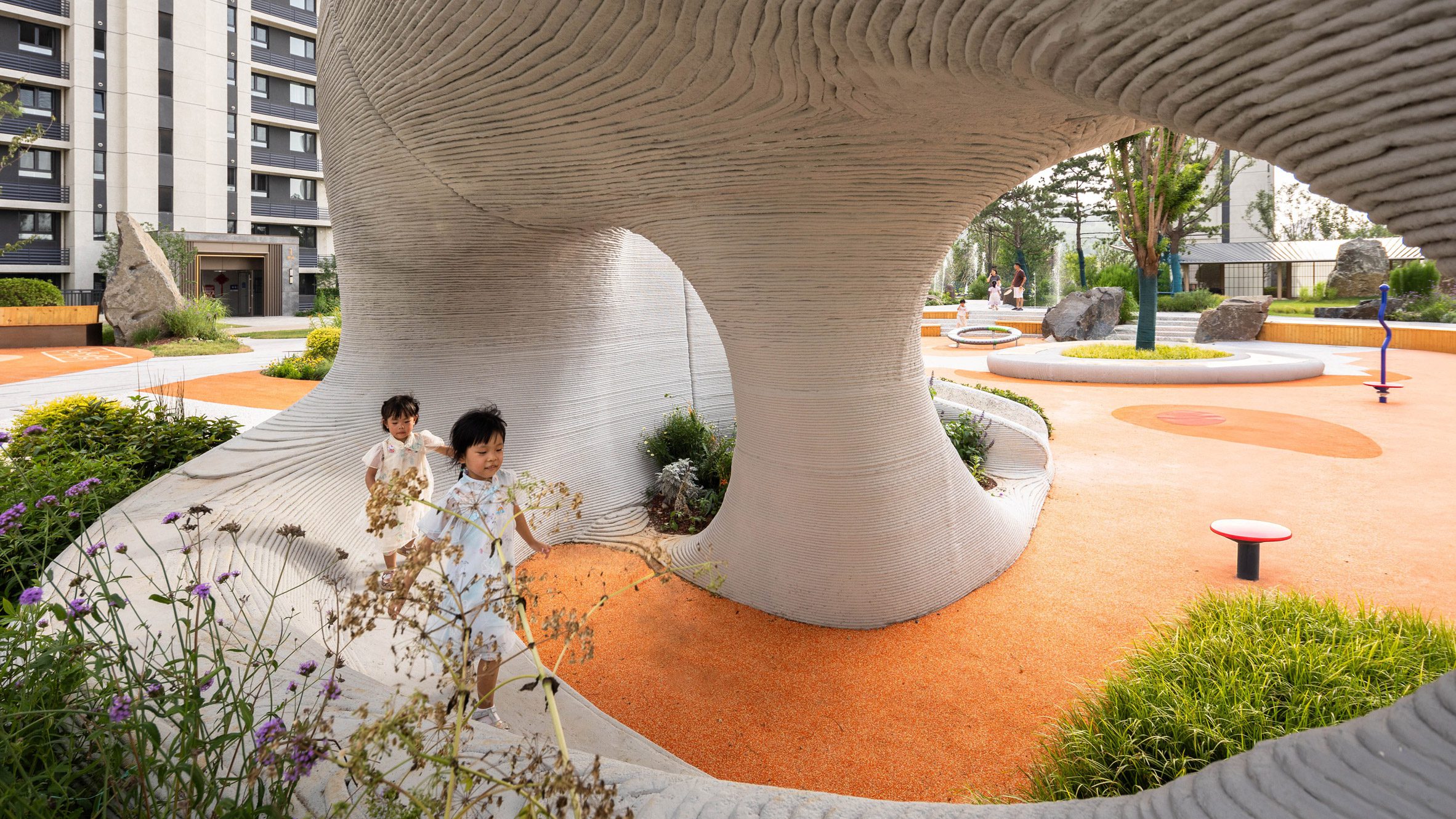 Xisui Design utiliza rocas de hormigón impresas en 3D para parques infantiles en China