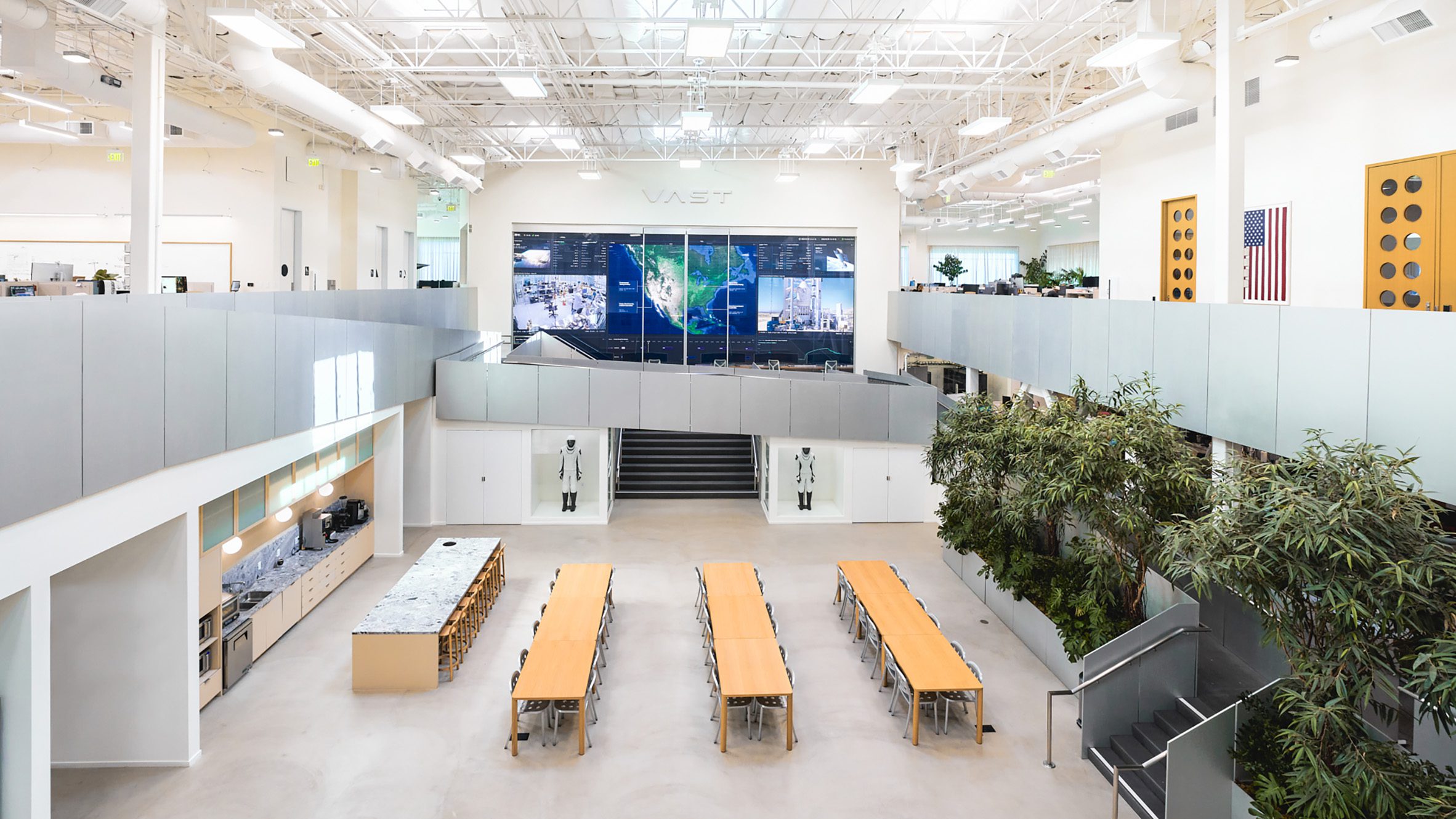 Aeroespace Company Vast Cooperates con Interiors Studio civil Traer un sentimiento centrado en las personas a los californianos Sedeque contiene un centro de control de misión especialmente construido y sala de limpieza espacio estación.