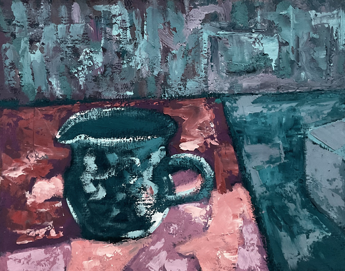 Dibujé el papel sobre un papel azul de mezclilla y luego permití que la vieja jarra de crema retenga la mayor parte de la pintura debajo. También se usa para la paleta de colores usando combinaciones de tetuarios. Realmente me encanta y lo volveré a usar. Gris, pero rojo/naranja, verde azul, rojo/violeta. Pienso, pero a veces lo olvido.