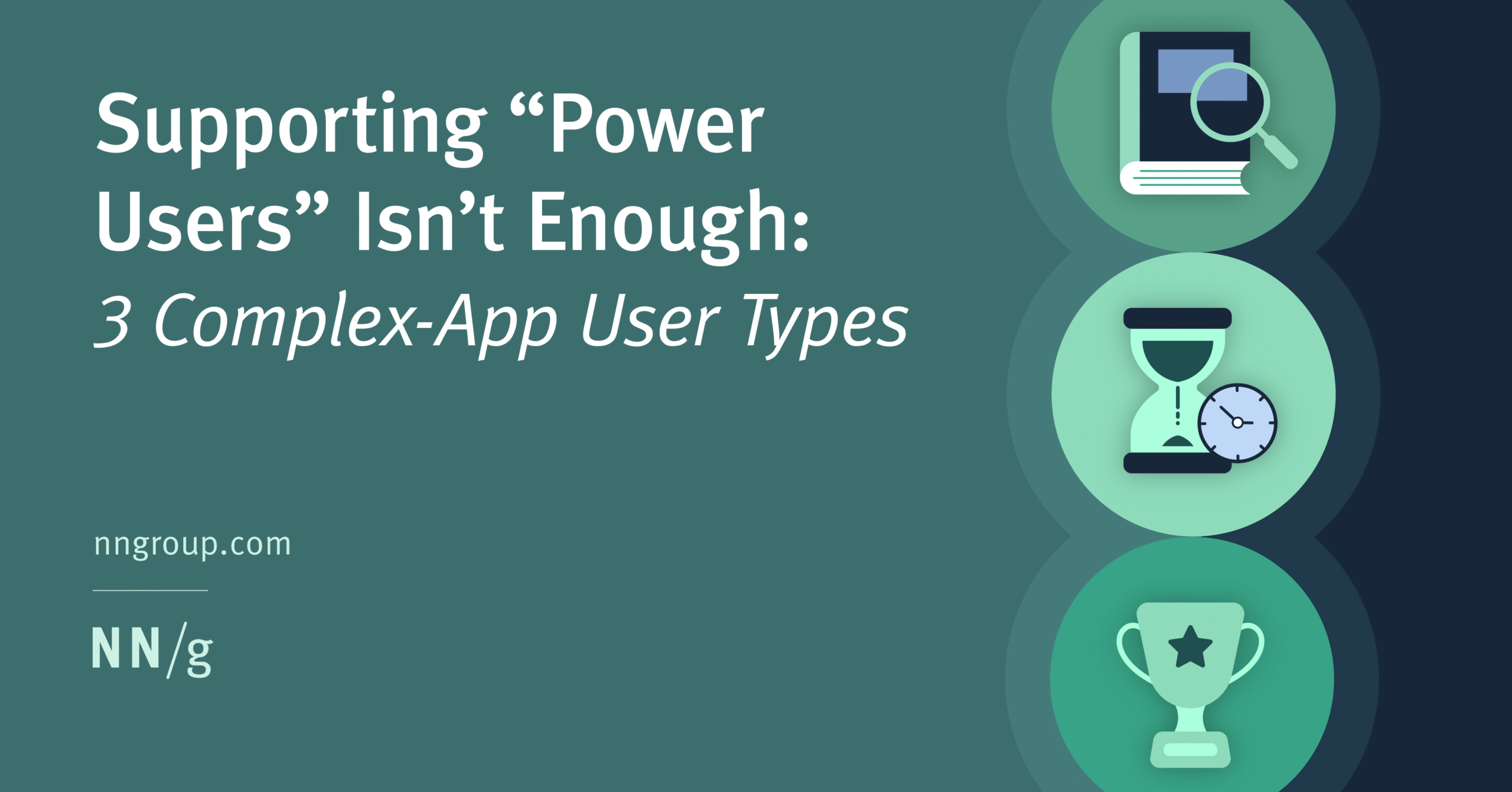 Al diseñar aplicaciones complejas, los profesionales a menudo se sienten presionados para trabajar en torno a usuarios de «poder»: los profesionales bien capacitados tienen un profundo conocimiento de dominio y años de experiencia utilizando el software. Si bien estos usuarios expertos son importantes, centrarse solo en ellos significa ignorar otros tipos de usuarios clave.