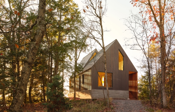 Bunkie on the Hill se encuentra en una pendiente empinada en Muskoka, un retiro compacto de 1,000 pies A-marco diseñado por la compañía Dubbeldam Architecture + Design con sede en Toronto.