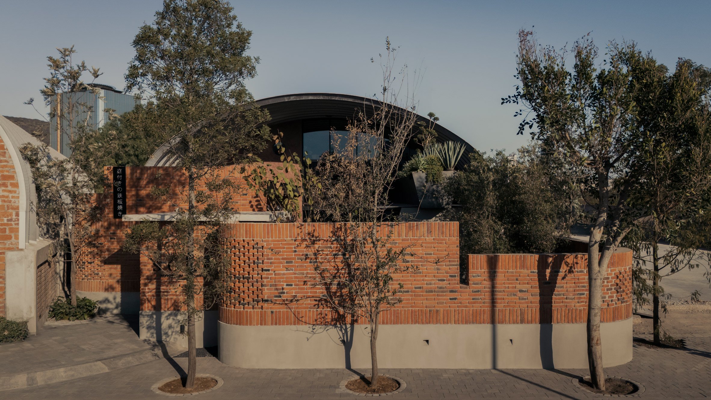 Estudio de la Ciudad de México Caam + Arquitectos techo de metal arqueado en Japón Comedor y ladrillo Las paredes de Querétaro, Méxicocitando las características industriales de la región.