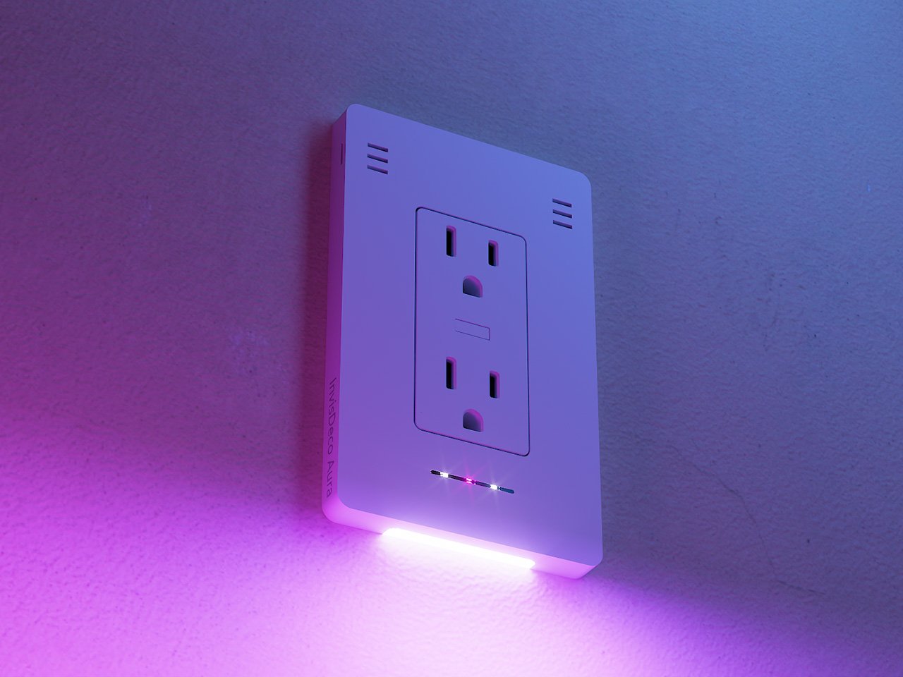 La forma en que funciona Invisoutlet Aura es simple: es un enchufe inteligente diseñado para adaptarse a la pared y luego oculta con una placa de la toma inteligente. El zócalo de la pared interno tiene dos enchufes 15A controlados de forma remota y una potente luz RGB construida a continuación. Las luces dibujan potencia directamente desde la línea de alimentación en sí, por lo que no necesita ‘enchufar’ nada. Cuando está inactivo, parece que su salida promedio de 2 plug, lo que le permite conectar una variedad de electrodomésticos, desde lámparas hasta humidificadores, cargadores, etc. Sin embargo, ¡alterne las luces RGB y la aura de la invisión de inviso de inviso de inviso de inviso de inviso en su muro de alimentación! La mejor parte? No es solo una luz aleatoria integrada en el enchufe, es un dispositivo IoT literal.