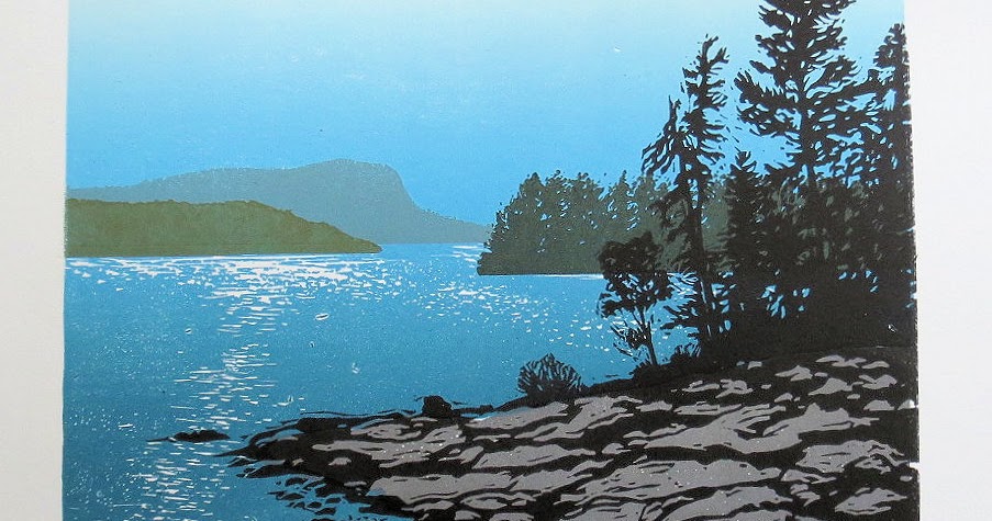 | Cerca del lago Superior cerca de Roseport – 2019 Impresión en relieve de cuatro bloques (7 colores) Tamaño de la imagen: 15 x 20 cm (6 x 8 pulgadas) |