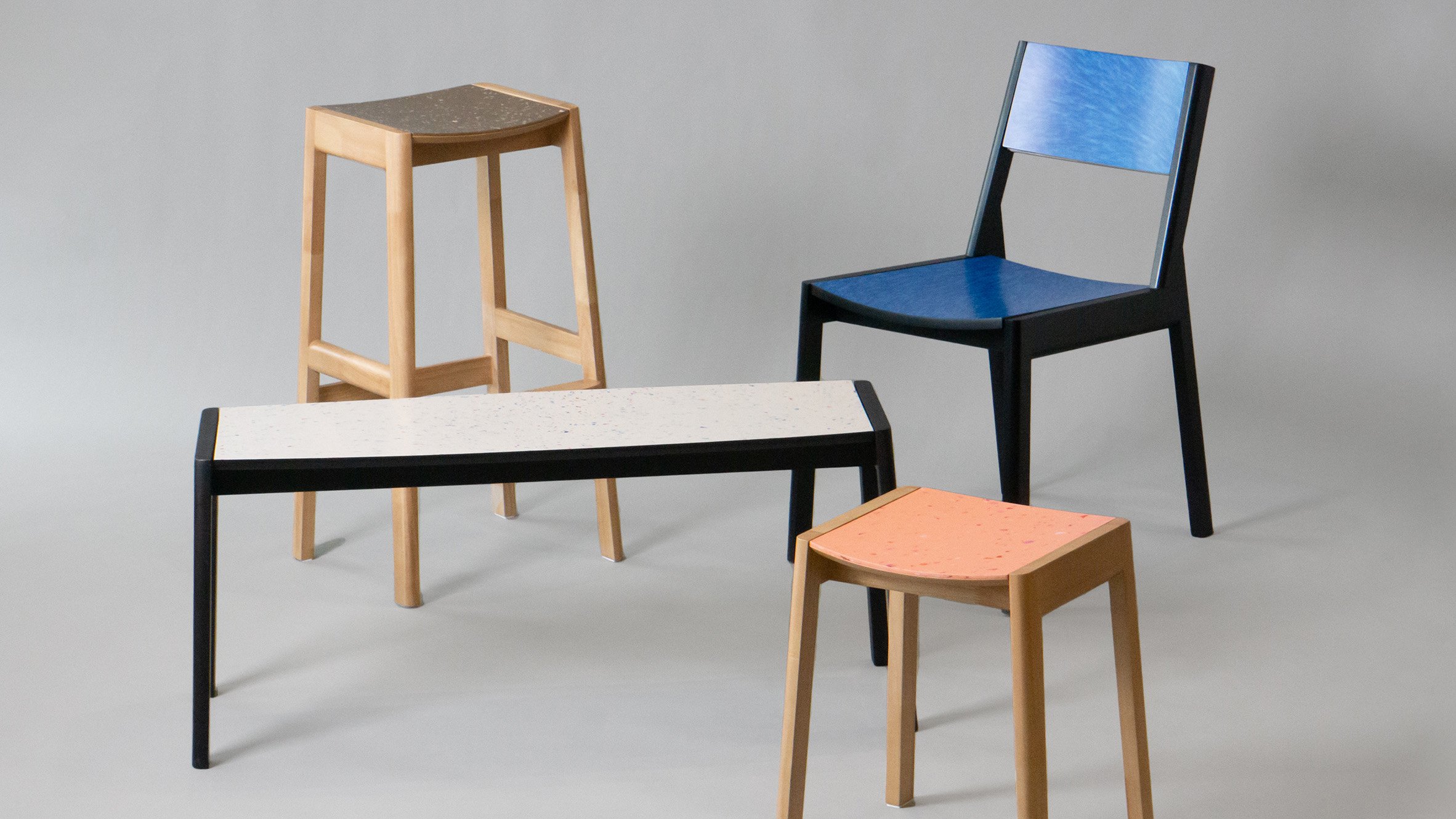 Showroom de Dezeen: Diseñador Jumphol Sochoentham y marcas tailandesas Desperdiciar más Creó un asiento Colección parcial Plásticos recicladosusado café Bastón de tierra y azúcar desperdiciar.