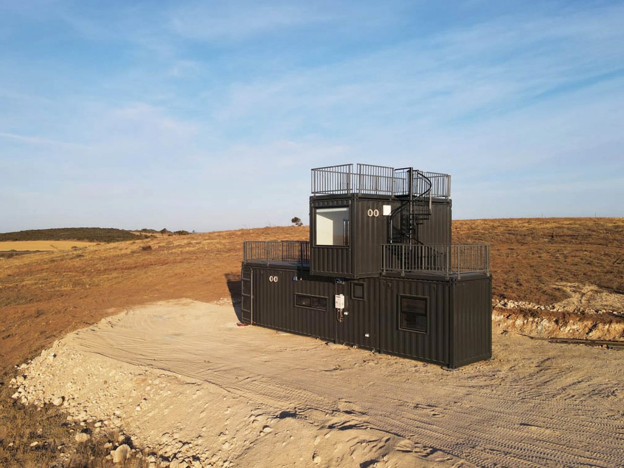 El espacio al aire libre puede ser la verdadera figura impactante aquí. Tres mazos separados extienden la sala de estar más allá de la pared del contenedor, cada una con un propósito diferente. La terraza delantera es su habitación principal al aire libre, lo suficientemente grande como para dispersarse en una cena o con su familia. La cubierta trasera adopta un enfoque más íntimo y está diseñado como un jardín en el techo donde puedes cultivar hierbas o verduras. La cubierta superior alcanzada por la escalera de espiral superior ofrece la mejor vista del paisaje circundante y convierte el período de inspección del clima en un ritual diario que vale la pena esperar.
