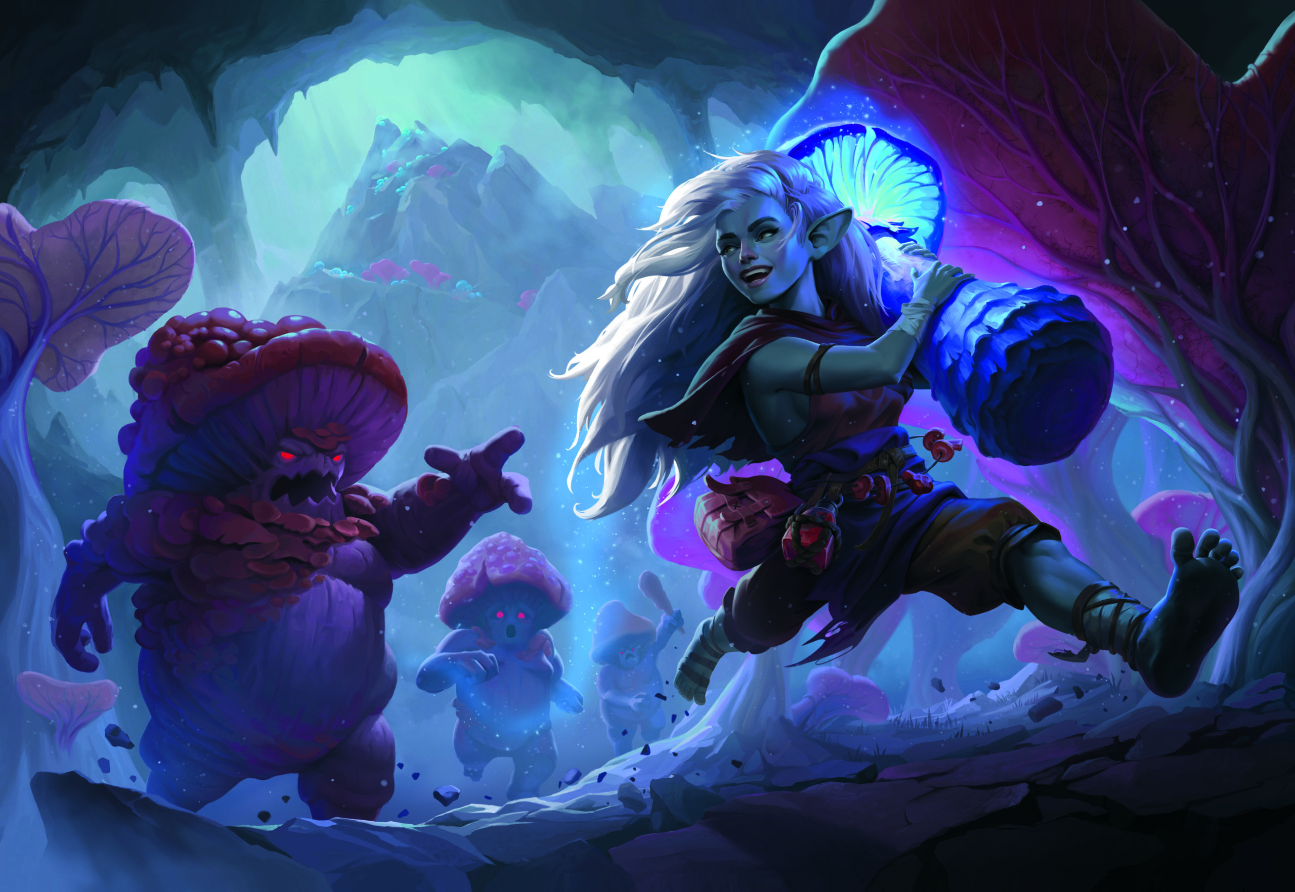 Este artículo cuenta la historia de los Knicks, el profundo druida gnomo del círculo de esporas. Originalmente era el personaje de dragón y dragón que interpretaba mi esposa en uno de nuestros deportes de fiesta. Los Knicks son un alma caótica. Ella es desordenada, caótica, obsesionada con los hongos, atrayendo constantemente lugares extraños y peligrosos para buscar hongos raros. Esta ilustración captura uno de esos momentos de aventura.
