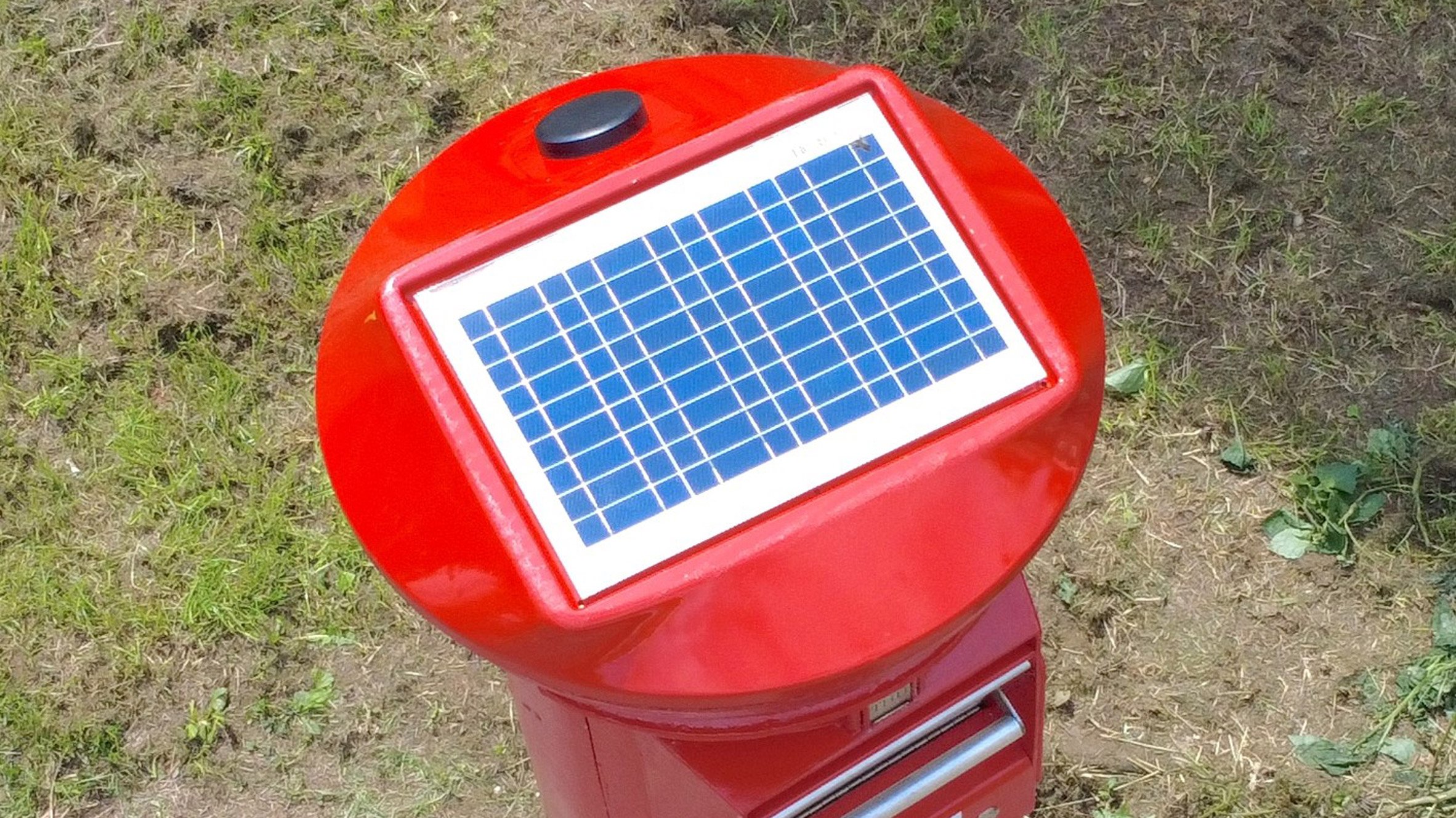 Los paneles solares están montados en el techo de cada buzón y se guían al sur para una exposición óptima al sol.