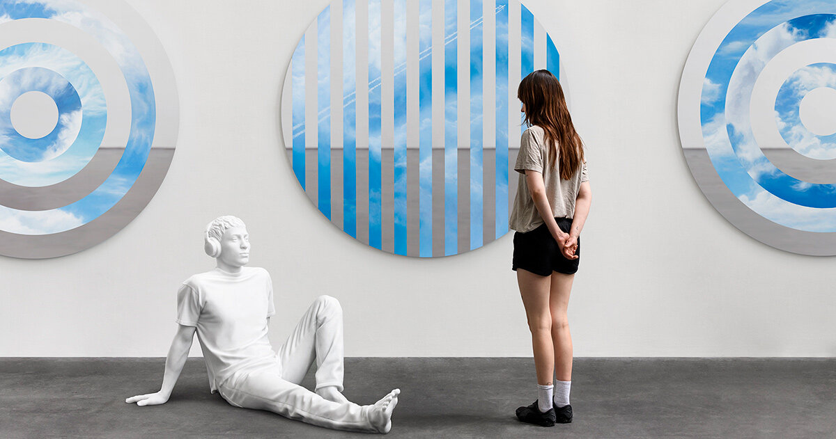 Entre las nuevas obras a lo largo de la galería Pace se encuentran obras de la serie Sky Target de Elmgreen & Dragset, una pintura circular de nubes a la deriva presentadas en discos de acero inoxidable recubiertos de espejo. Cada disco está cubierto con desechos atmosféricos con una superficie reflectante, fusionando imágenes del cielo con vislumbres de la audiencia. El nombre de la posición de significado para el artista, la fase de ingeniería es una interacción jerárquica entre la representación y la reflexión.