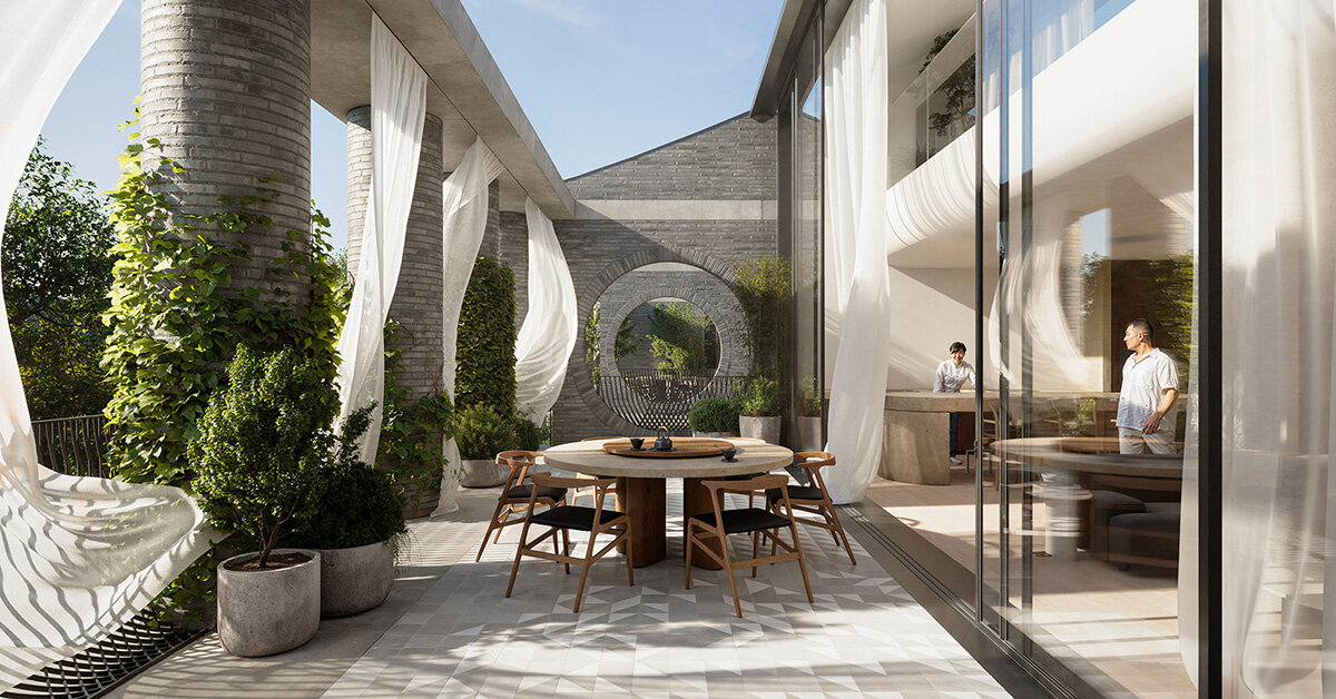 Dhaus’s Forest Gate está diseñada con jardines de roca hundidos, casas de té públicas y caminatas de arte, todos cuidadosamente tejidos en la estructura histórica de la ciudad. En el interior, los apartamentos están dispuestos como unidades apiladas. El estudio desarrolló una escalera de doble hélice que permite que dos unidades apiladas permanezcan completamente privadas al compartir un núcleo compacto, optimizar el diseño, la privacidad y la eficiencia. El proyecto tiene como objetivo expresar un diálogo armonioso entre el patrimonio oriental y la creatividad occidental, que marca una aventura emocionante que lleva a Dhaus a los paisajes arquitectónicos chinos, geográfica y creativamente.
