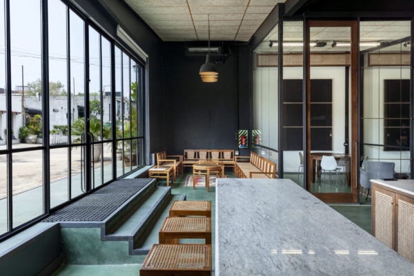 En la sala de espera, a lo largo del corredor de circulación central, a lo largo de la orden de cafés de estilo antiguo, salas de reuniones, bibliotecas, salas de reuniones y auditorio.