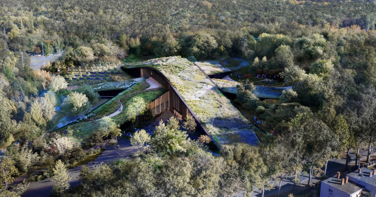 El Museum of Futures se encuentra en el gran bosque de Debrecen, la segunda ciudad más grande de Hungría, y se elevará desde el terreno forestal. Con su techo verde y su fachada de madera carbonizada, el museo se mezclará con su entorno al tiempo que proporciona una sala de exposiciones liviana para su colección permanente.
