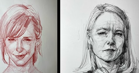 Rojo, azul, lápiz de grafito celebridad Y más retrato dibujo