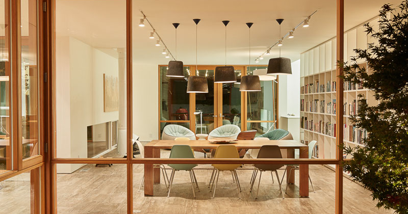 El estudio del artista está a solo unos pasos del espacio principal, ubicado la mitad del nivel a continuación, y el aislamiento no. Con techos de la catedral en alza y una luz abundante, el estudio proporciona el telón de fondo perfecto para la creatividad mientras mantiene una conexión visual con el resto de la casa.