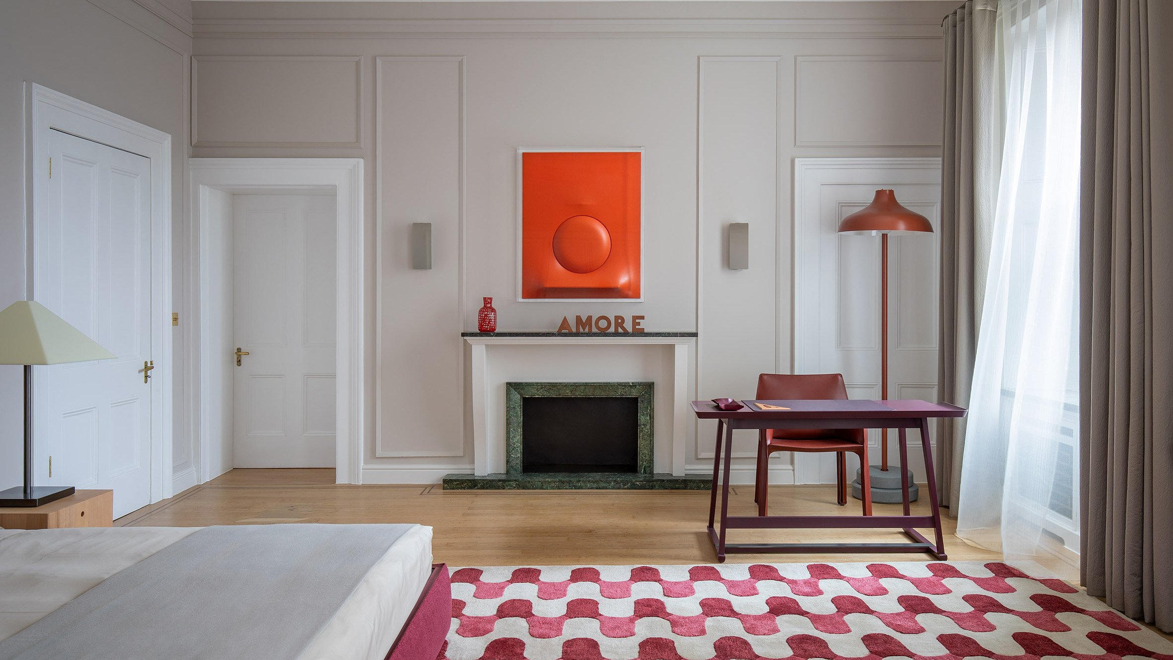 Las habitaciones que incluyen la suite presidencial están equipadas con camas de cinta de arquitectos belgas Vincent Van Duysen para Molteni & C.