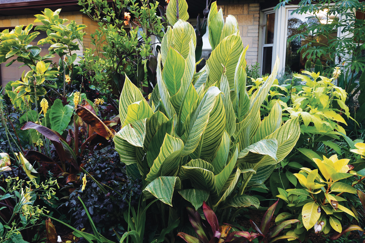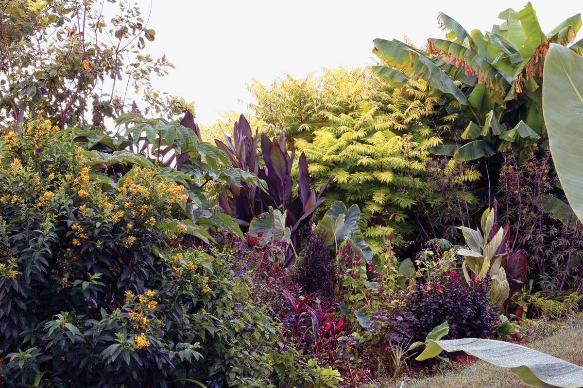 Agregar una estructura duradera a los jardines tropicales con plantas fuertes