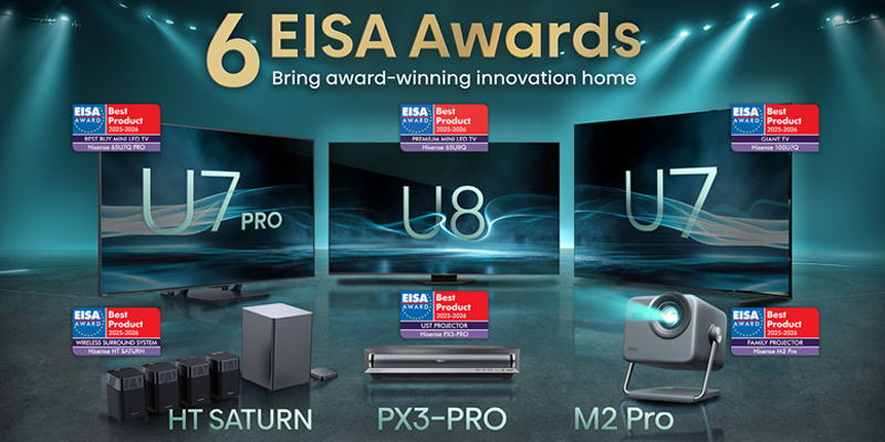 La compañía recibió seis premios de los Premios EISA 2025-2026 (Asociación de imágenes y sonido de expertos) Hisense Fusionar su posición en la imagen y la tecnología de sonido de alta calidad. El reconocimiento otorgado por la Asociación de Imágenes y Sound de Expert (agrupados de 30 países con más de 60 medios profesionales) enfatiza la innovación, el rendimiento y la experiencia del usuario de los productos galardonados.