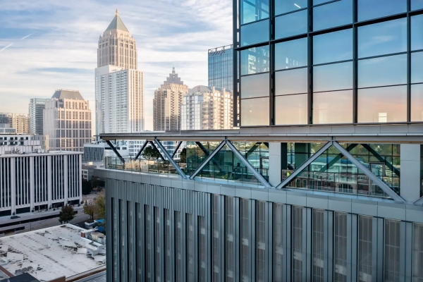 Los elementos de soporte diagonal internos y externos son característicos de las fachadas modernas.