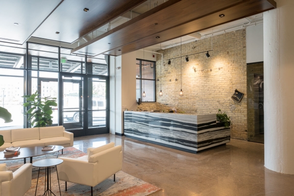 Los esfuerzos de restauración en la sede de Coakley Brothers Co. Company incluyen exponer vigas y armaduras de madera originales y preservar pisos de fábrica de concreto y fachadas de ladrillo para mantener e integrar las características históricas del edificio.