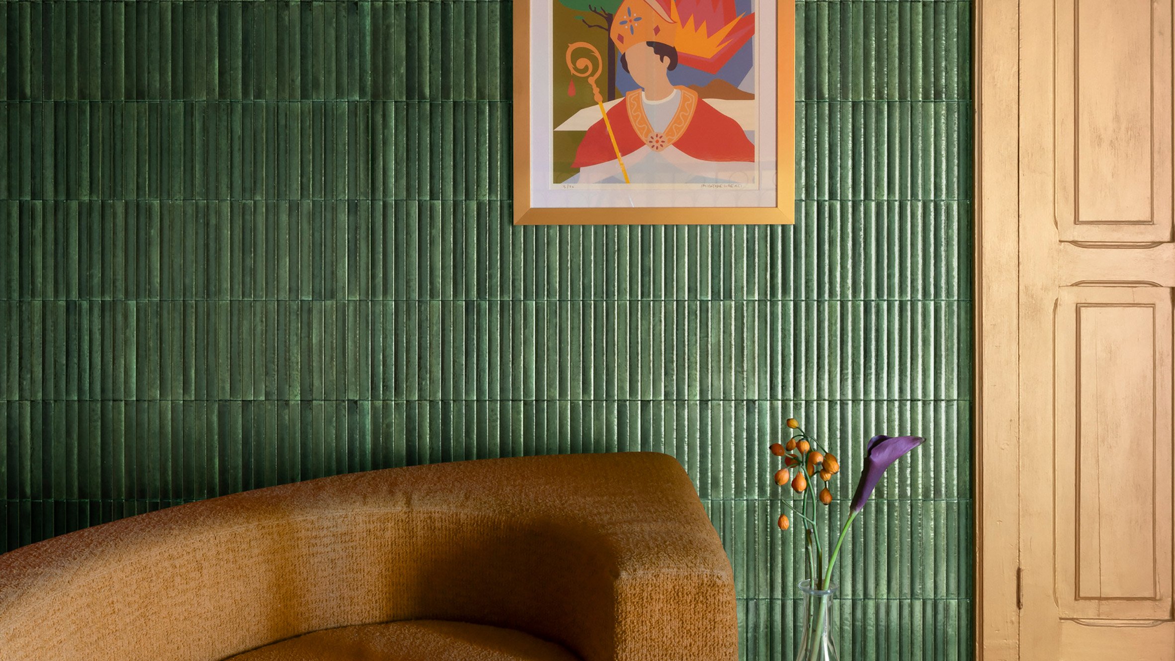 este LUME POLCELAIN Stoneware Collection Conocido por su apariencia de Zellige y tiene un acabado súper brillante. Las irregularidades de la pátina y el color crean una mezcla de tonos en las paredes.