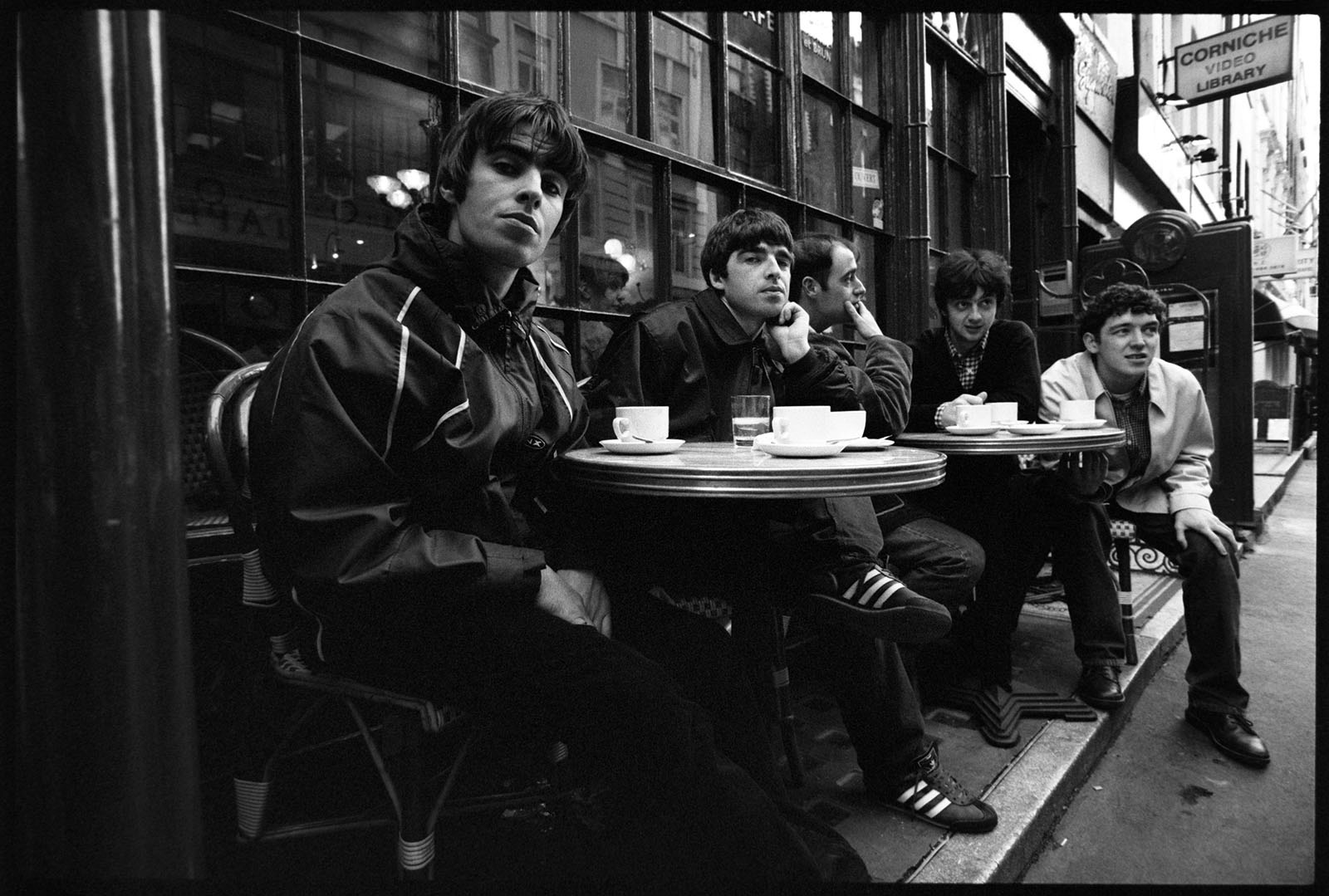 British Rock Band Oasis (Noel Gallagher, Liam Gallagher, Paul McGuigan, Paul Arthurs, Tony McCarroll) en Soho, Londres, 15 de marzo de 1994.