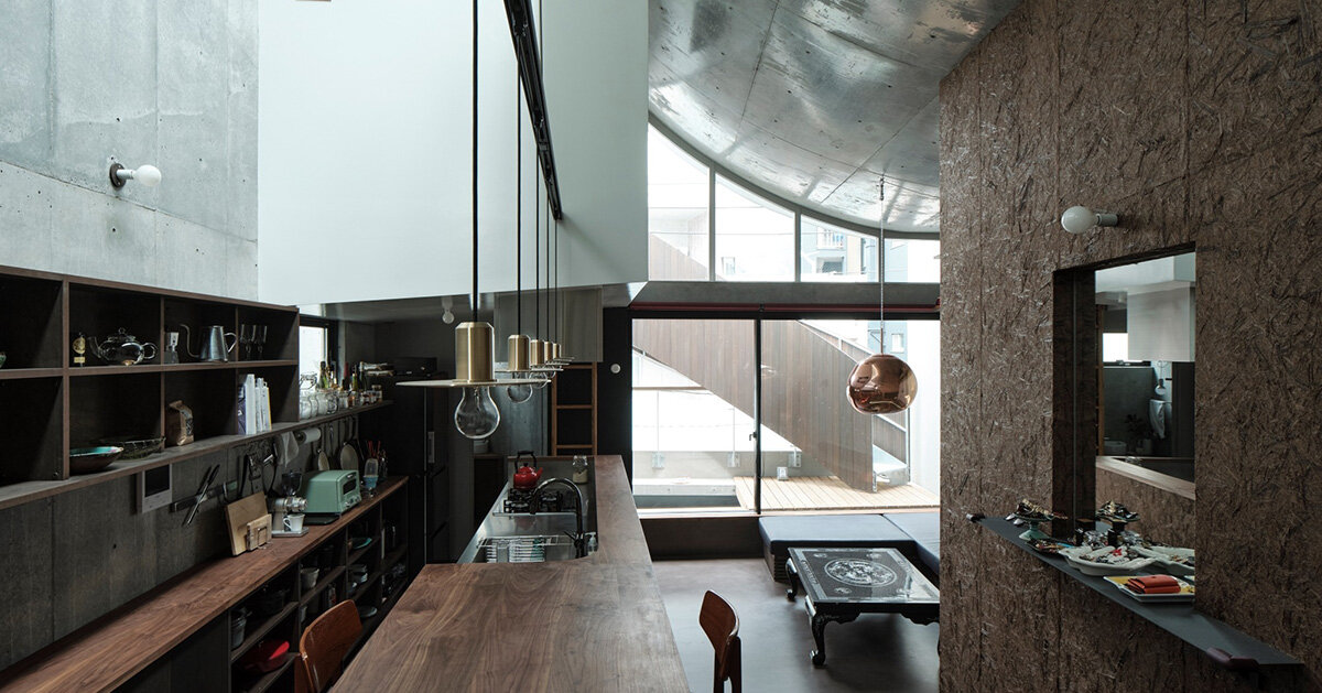 El techo curvo trae luz a una residencia de tres pisos en Tokio Aoim