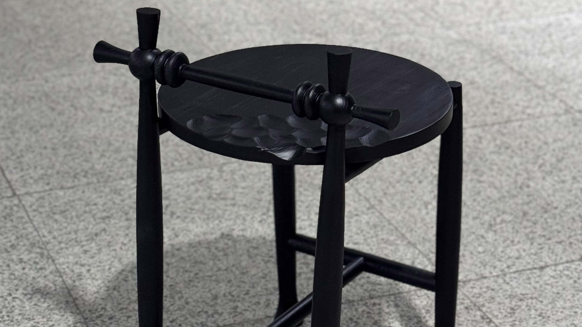 Showroom de Dezeen: Práctica de Tailandia Estudio de recrefico Aplicar japonés La madera quemada Shou Sugi Ban Technology Sillaque tiene una forma que citó la práctica de meditación.