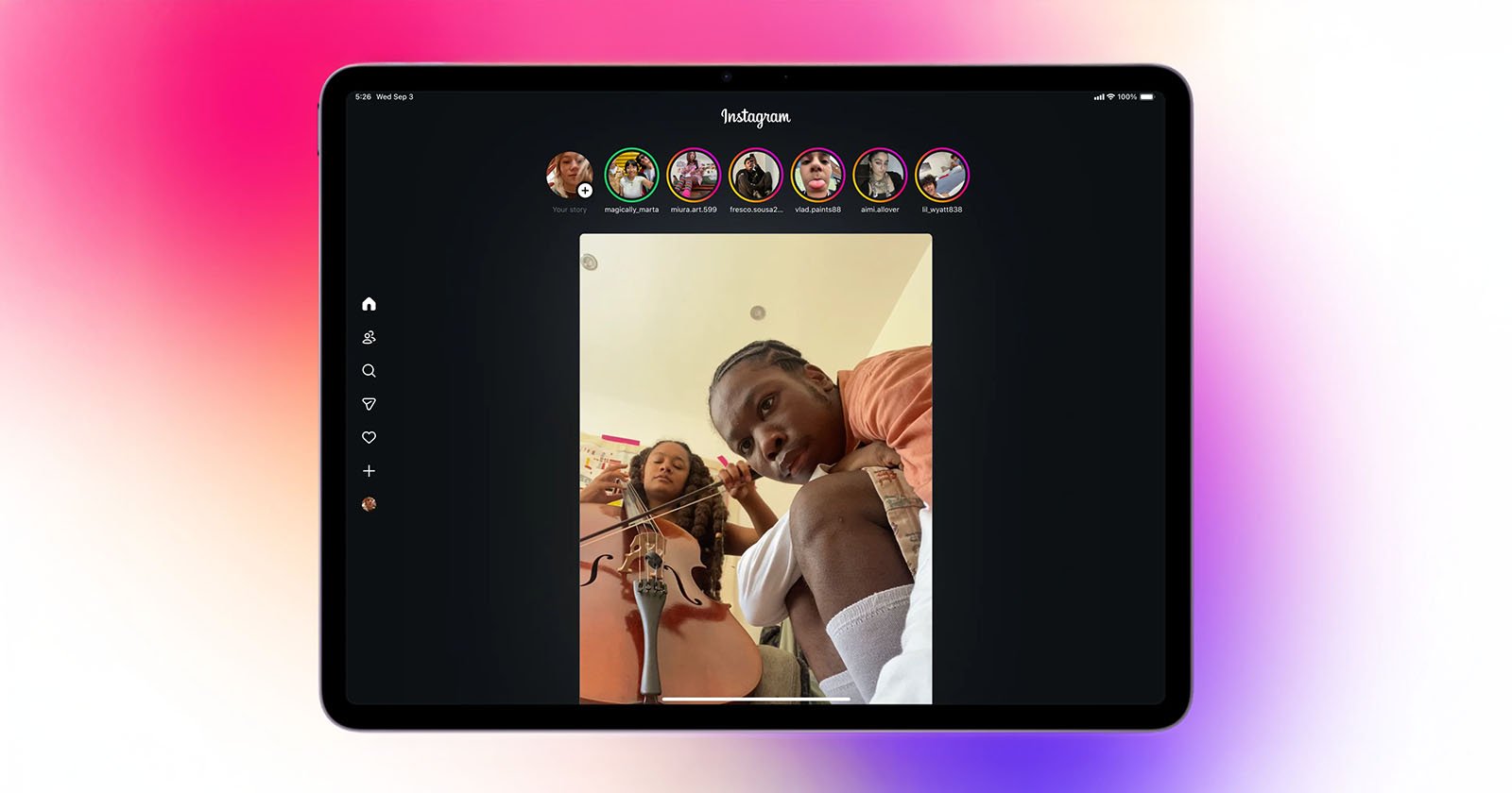 Al igual que YouTube usa pantalones cortos en iPhone, Instagram para iPad pondrá mucho énfasis en el contenido de video de forma corta. Cuando los propietarios de iPad abren Instagram, la aplicación salta directamente a los carretes, que según Instagram proporcionará «contenido divertido que le guste en una pantalla más grande». En esta pantalla abierta, la historia está en la parte superior y se puede acceder a otras áreas de Instagram a través del panel vertical a la izquierda de la pantalla.