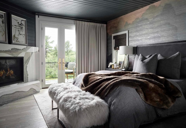 Los tonos oscuros y oscuros contrastan audazmente texturas rústicas y metálicas para inspirar el espacio privado. Escultura, la decoración de la pared en capas agrega profundidad.
