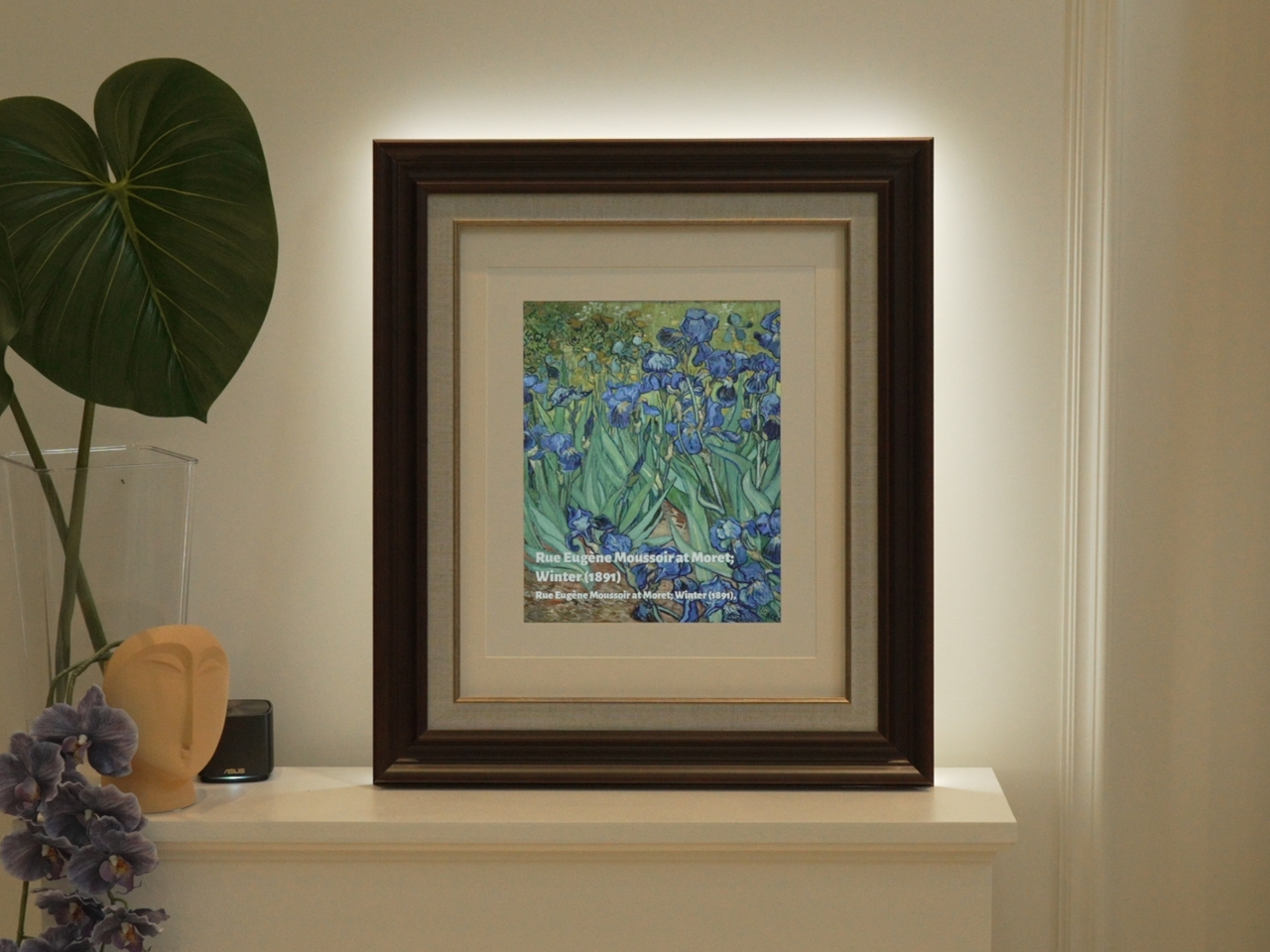 El sistema de iluminación del estado de ánimo agrega otra capa de atmósfera, con escenas personalizables que transforman el marco del enfoque de meditación durante las sesiones de yoga de la mañana a un núcleo cálido y seductor para reunirse con amigos. La posibilidad de personalización va mucho más allá de mostrar obras maestras clásicas, aunque estas réplicas de calidad de museo ciertamente se ven increíbles en pantallas de papel que imitan las texturas de lona reales.