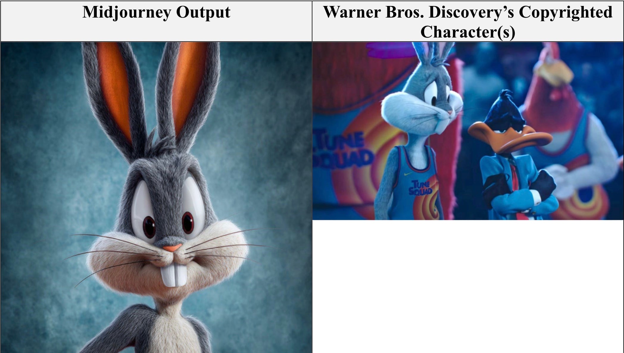 Warner Bros. Discovery incluye muchos ejemplos en su demanda, que muestra cómo MidJourney recrea algunos de sus queridos personajes, incluidos Batman, Bugs Bunny, The Joker, Rick and Morty y Scooby Doo.