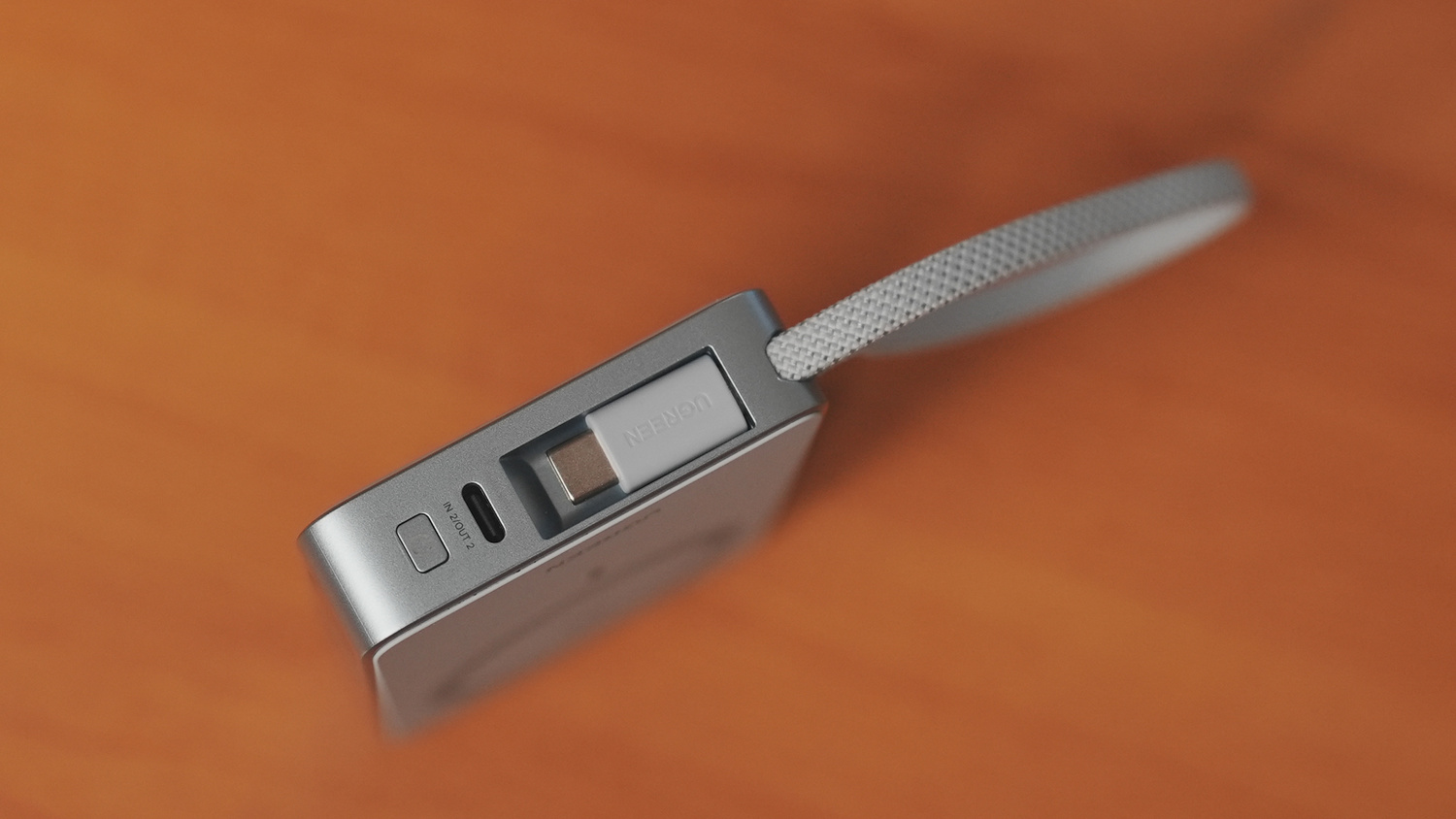 El banco de energía Ugreen Magflow 10,000 Mah Qi 2.2 está en forma compacta y sujetada con una almohadilla de carga magnética en un lado y un puerto adicional en un borde. Viene con un cable USB-C plano fijo incorporado que recarga 30 W, lo que retrae la correa de la mano cuando el pestillo de punta se bloquea al compartimento. Cuando se combina con un cable compatible, el siguiente puerto USB-C también puede cargar 30 W. Sin embargo, el modelo no tiene ningún puerto USB-A, lo que puede ser un inconveniente para aquellos que todavía usan cables USB-A en dispositivos de baja potencia.