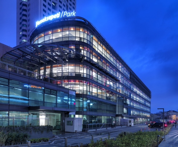 El centro del Parque Yemeksepeti está ubicado en una galería de cinco pisos conectada por puentes temáticos y áreas sociales interactivas. La paleta de piso pasa de amarillo a rojo carmesí, haciéndose eco de la marca corporativa y el apoyo a la ruta.