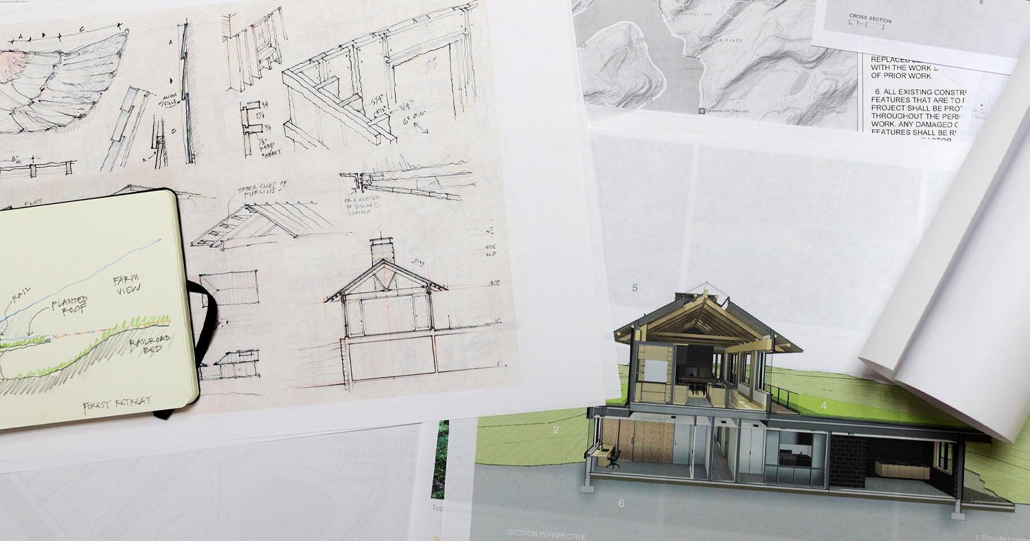 En The Rolling, una postura arquitectónica tranquila se eleva junto a un ferrocarril abandonado del siglo XIX en el terreno boscoso cerca del lago natural más grande de Pensilvania. Aquí, incrustadas en la curva de la ladera, las casas familiares contemporáneas se desarrollan en composiciones en capas de los paisajes de piedra, madera y techos plantados.