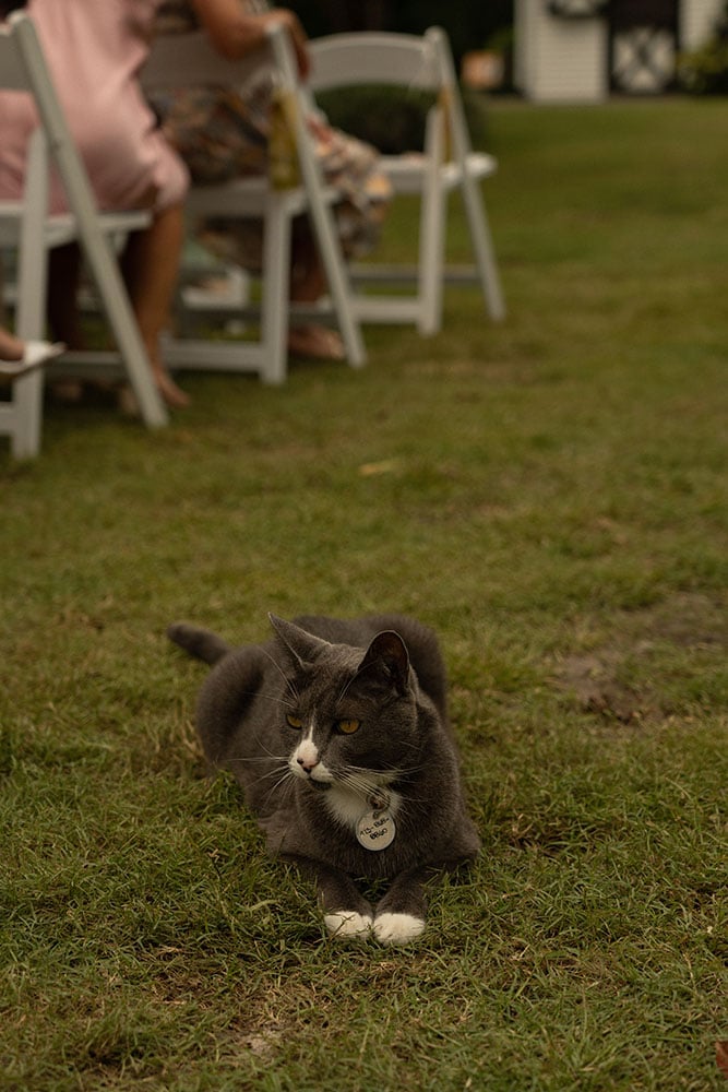 “El novio lloró y todos se centraron en ellos y en ese momento. Fue una hermosa ceremonia. La novia no conocía a Grayson hasta más tarde, hasta más tarde, le dije que tenía que alejar a un gato.