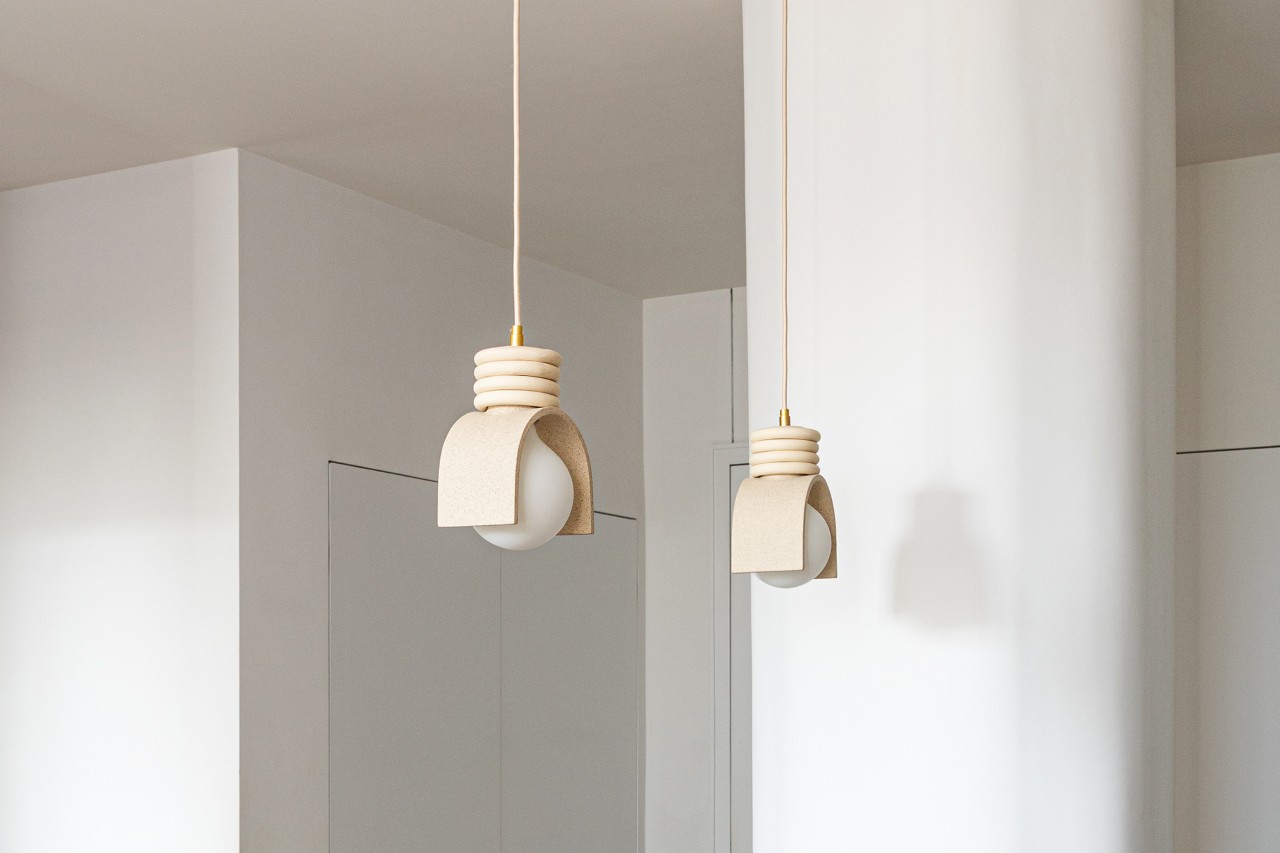 por fin, Luna Es una lámpara de araña inspirada en muchos estados de ánimo en la luna. Las sombras de cerámica cuelgan sobre la bombilla como la tela suave, y las sombras fundidas se mueven y se mueven como fases lunares. Las cuatro bobinas construidas a mano en la base asintieron y asintieron con la cabeza a la órbita de la luna alrededor de la tierra, convirtiendo cada rayo de luz en un recordatorio tranquilo y celestial del ritmo de la naturaleza.