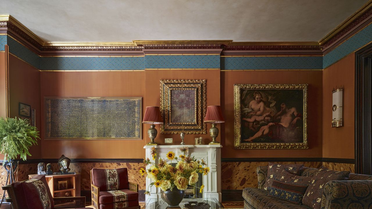 El equipo formó rápidamente un equipo de fabricación de empresas de diseño/construcción, y su trabajo colectivo tuvo que contar una historia. El resultado son intervenciones antiguas y más grandes (como pinturas decorativas y fondos de pantalla) y una mezcla codiciada de alfombras e interiores que gradualmente se vuelven más ligeros en subidas más altas. Sobre el nivel del jardín, su sala de proyección de ropa de corcho vestía de color verde oscuro y habitaciones cercanas llenas de rojos ricos, y la sala de estar era un recorrido por la arcilla de la tierra, el turquesa exótico, el blanco cremoso y el patrón. Hamill explica que el archivo de fondo de pantalla impreso de fresa de Zuber en el restaurante (un predecible predecible «, serpenteante sobre la frontera turquesa. Allí, los diseñadores de los diseñadores (principalmente de Inglaterra, Francia, Italia (donde una vez vivió) y España (donde ahora vive su madre) usan un par de lámparas de paredes de 1950 de Roma de 1935 en 1935 en 1935, y 19th Century Ouhak Century Oshugu Rou Siglo XIX. «Todos tienen historia e historias», dijo la esposa.