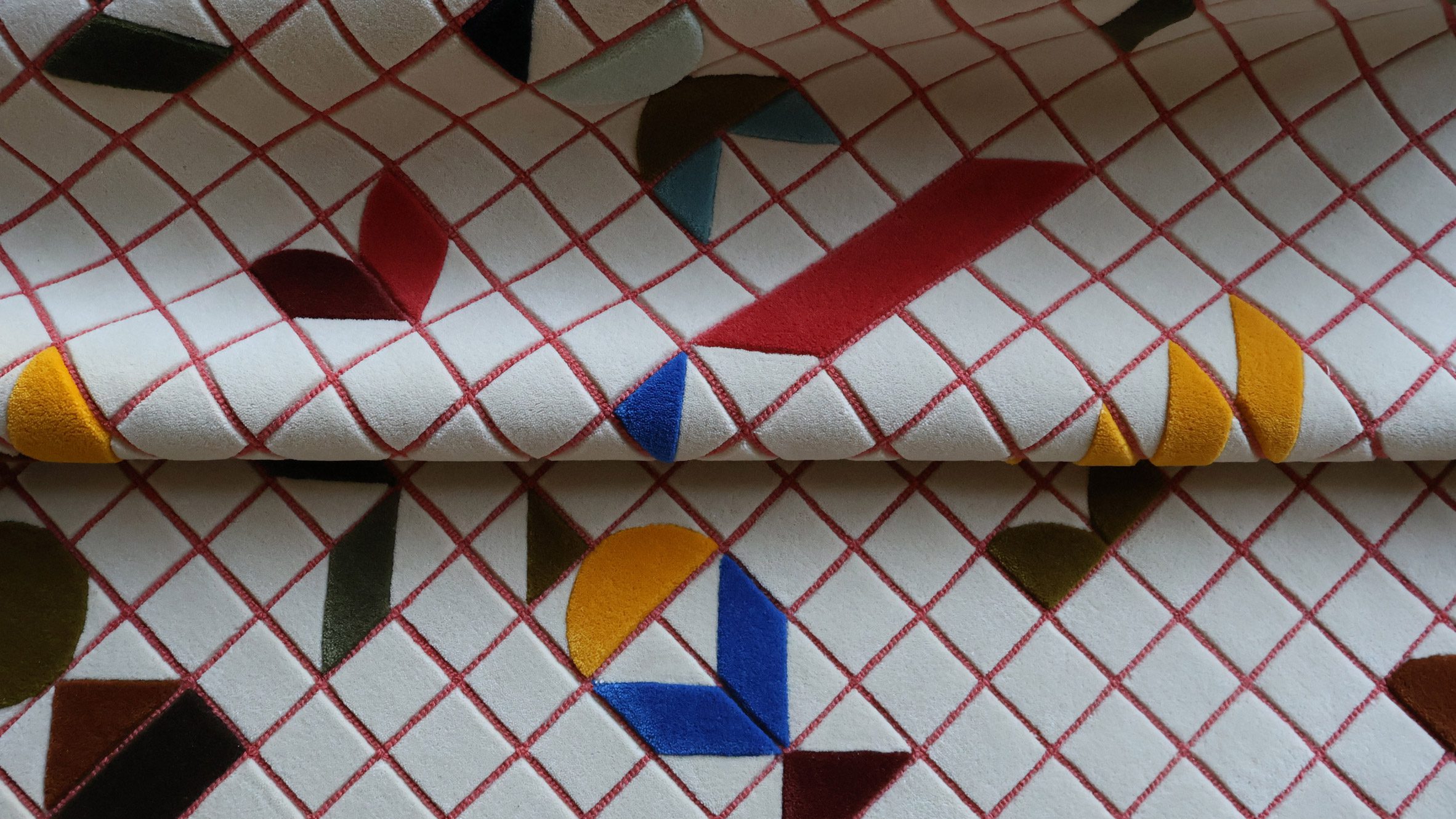 Showroom de Dezeen: Marca de diseño noruego devolver Trabajando con la diseñadora Kristine Fivemelvær en una serie de alfombras de caleidoscopio de mano a mano decoradas con patrones geométricos.